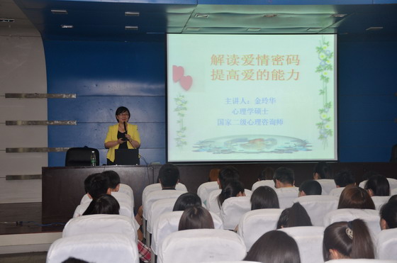 《解读爱情密码 提高爱的能力》由金玲华老师主讲。讲座以古今中外的经典爱情故事为切入点,解读“什么是爱情?”,“真爱的三个要素”,通过生动的案例分析了暗恋、失恋和恋爱过程中的情感困惑,指出“爱是一种能力”,帮助我院大学生摆正爱情在人生中的位置,树立正确的恋爱观,学会爱与被爱,提高爱的能力。