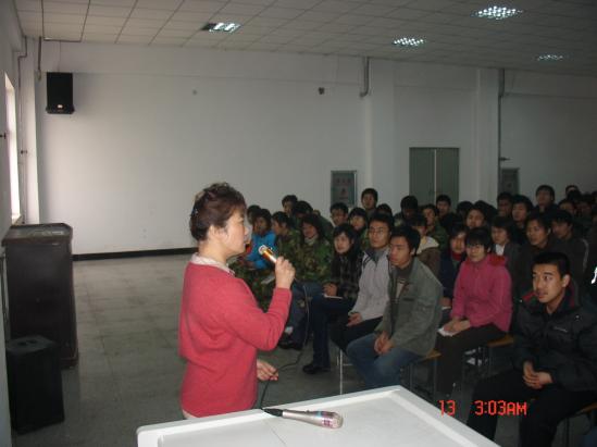 2006年12月12日下午3点,我院数控分院针对2007年毕业生的就业问题举办了“告别象牙塔,迎接新生活”为主题的心理讲座。主讲人是山西广播电视大学王翠英老师和山西综合职业技术学院王燕老师。