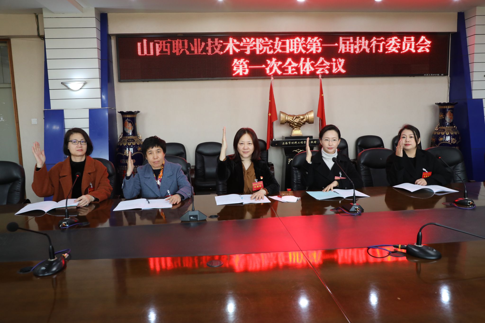 在会议第二阶段,学院妇联第一届执委第一次会议召开,审议通过了《学院妇联主席、副主席选举办法(草案)》,选举产生了妇联主席1名、副主席2名。曹琳静当选为学院妇联第一届执行委员会主席,王粉波、申香菊当选为学院妇联第一届执行委员会副主席。